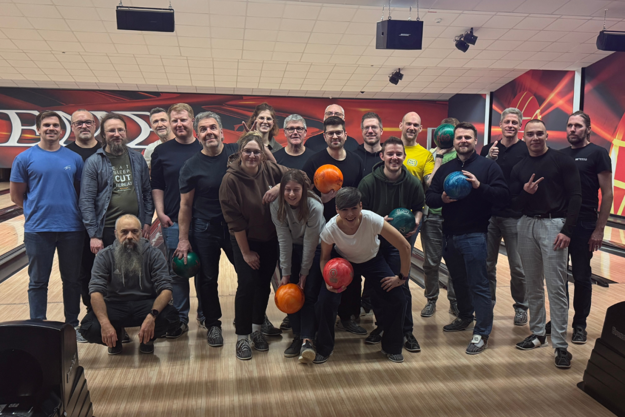 Statt am Schreibtisch standen wir diesmal gemeinsam an der Bowlingbahn. Unser jüngstes Team-Event führte uns in die Extreme Bowling Arena in Schweinfurt. In toller Atmosphäre ging es darum, gemeinsam eine gute Zeit zu haben und die eine oder andere Kugel – mal mehr, mal weniger zielsicher – über die Bahn zu schicken. Ein Abend, der mal wieder gezeigt hat: Als Team räumen wir am besten ab!