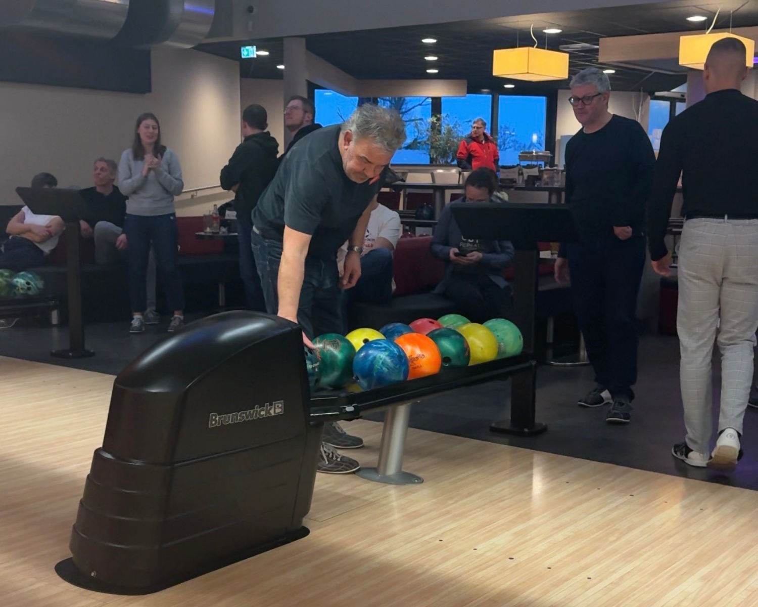 Rein in die obligatorischen Bowlingschuhe und ab an die Kugeln! Wir haben uns strategisch auf die Bahnen verteilt – mit 23 Personen verteilt auf 4 Bahnen war die Stimmung direkt auf Betriebstemperatur. Während die einen noch die perfekte Kugelgröße suchten, testeten die anderen schon mal die Gleitfähigkeit der Bahn. Ein entspannter Start, bei dem der Spaß von der ersten Minute an im Vordergrund stand.