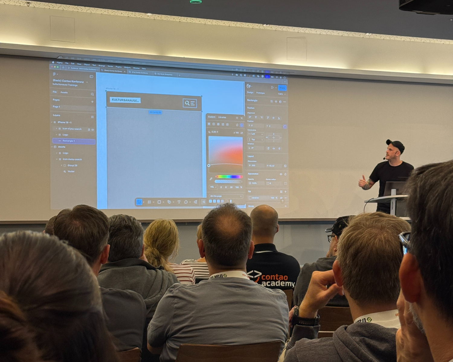 Neben den großen Linien überzeugten auch Themen, die direkt in den Alltag von Entwicklerinnen und Entwicklern hineinspielen, wie beispielsweise der Vortrag zu Erweiterungen und Themes im Contao Manager. Besonders die Einblicke in Packagist, Metadaten, private Pakete und die Möglichkeiten zur Entwicklung und Nutzung von Themes haben gezeigt, welche Potenziale hier noch schlummern. Außerdem lernte man im Vortrag „Modernes CSS in Contao nutzen“, wie sich mit Grid, Subgrid und Flexbox noch flexiblere Layouts erstellen lassen. Und auch das Zusammenspiel von Design und Code wurde beleuchtet: Mit einem klaren Workflow in Figma können Layouts zunächst detailliert entworfen werden, um anschließend schneller und sauberer in Code umgesetzt zu werden.