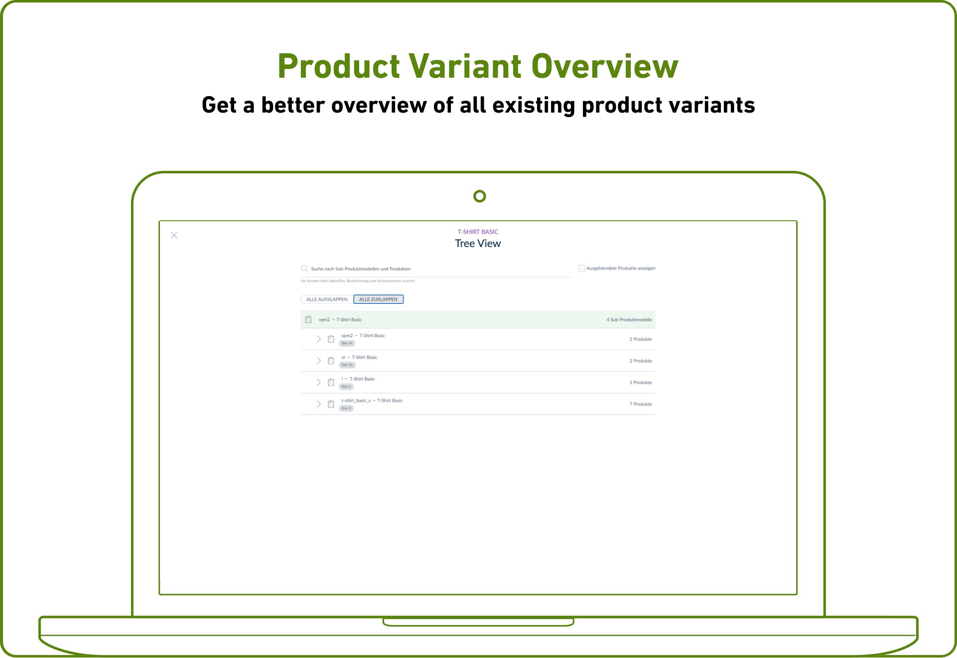 You have a lot of product variants in your PIM? Then, get ahead of the curve with our Tree View expansion a quick Overview of all existing product models and the corresponding variants. Of course, you can browse your variants will be much easier. See our Screenshots. The extension is compatible with all Akeneo Community Editions, and with the Enterprise Edition, as a PaaS, variant.