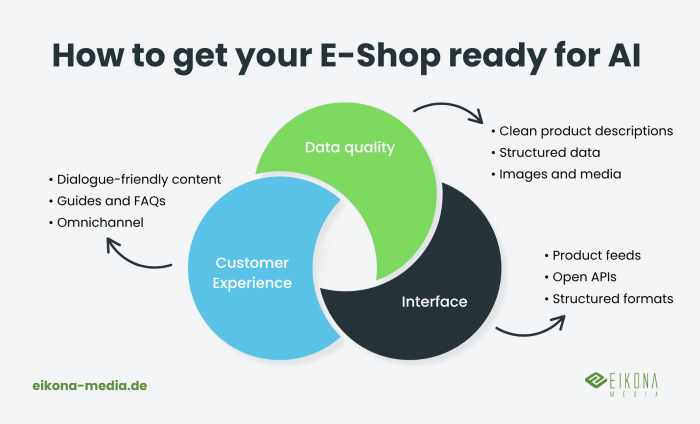 To ensure your online store benefits from AI-powered shopping, you should focus on three areas: data quality, interfaces and customer experience.